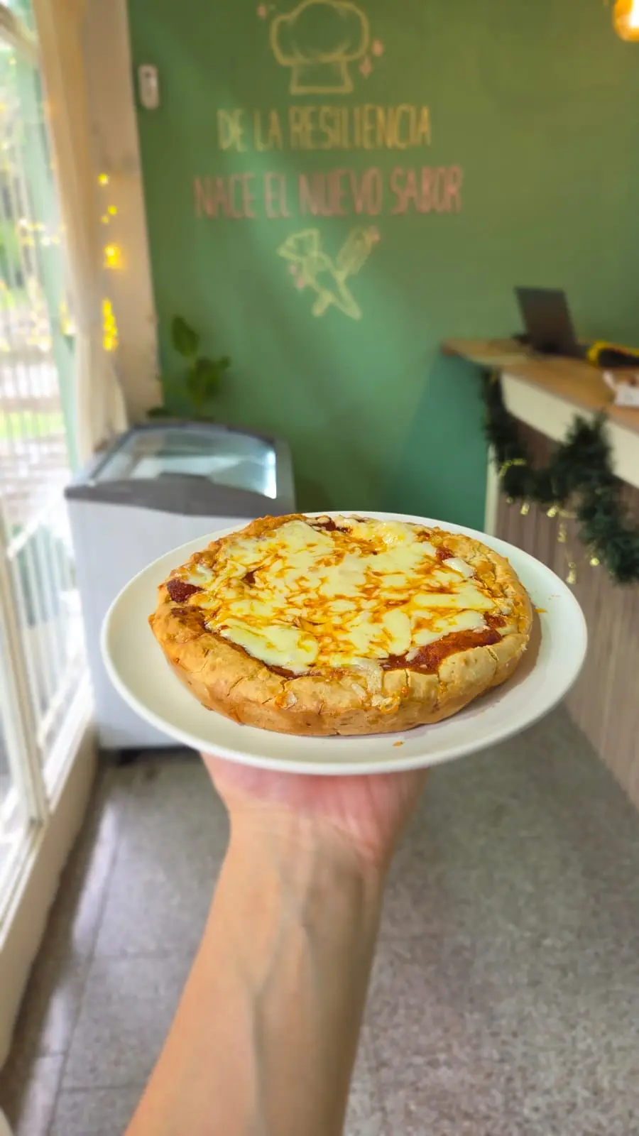 Prepizza a base de chipa, salsa de tomate y muzarella.
