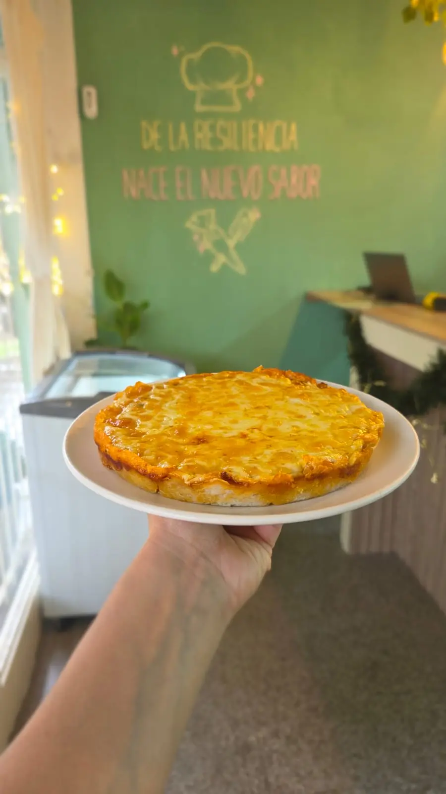 Prepizza congelada base de premezcla Sin Gluten, salsa de tomate y muzarella.